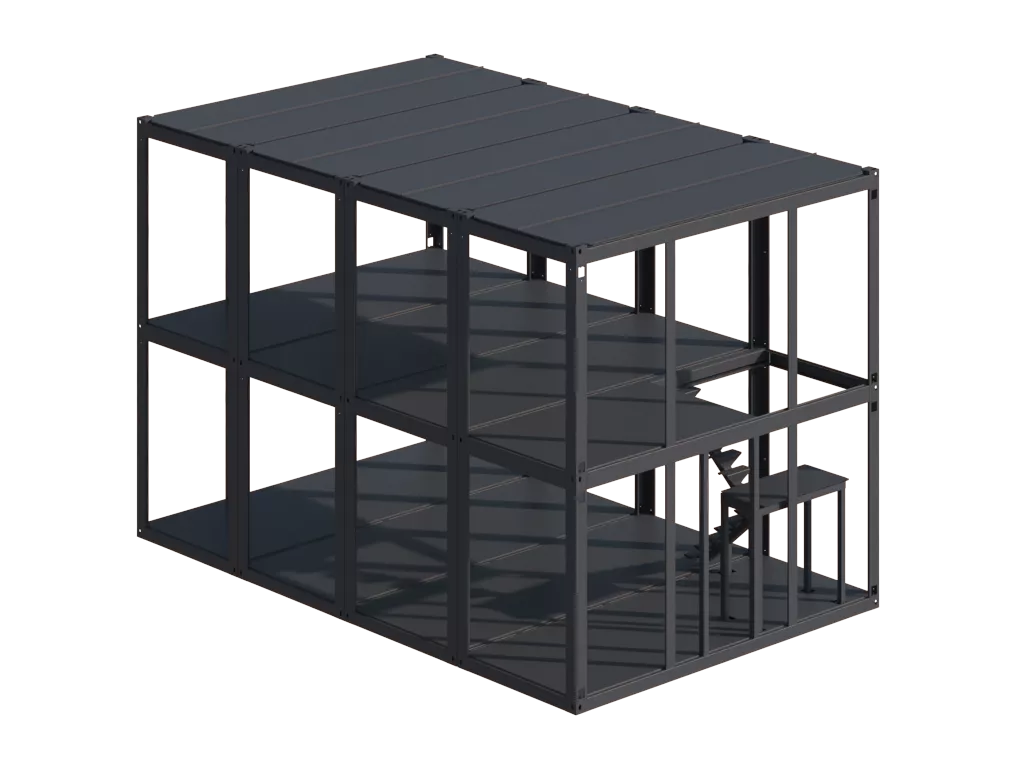 - металлокаркас из строительных конструкций типа Prefab, с утепленными рамами и угловыми стойками;